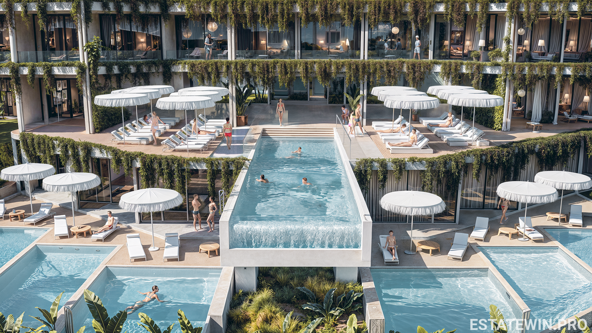 Доступны варианты с собственным бассейном и садом.
