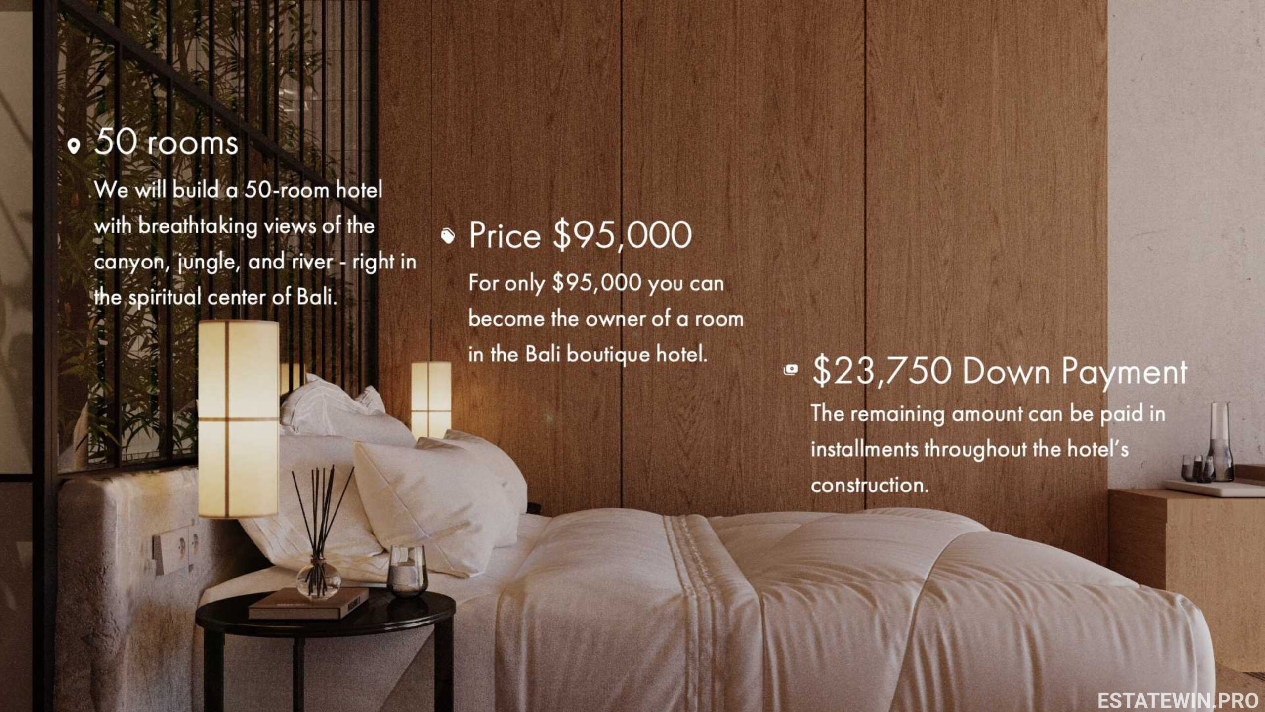 Бутик-отель с панорамным видом на джунгли, каньон и реку — уникальное расположение, живописный инфинити-бассейн, высокий доход, управление от опытной команды на Бали.
